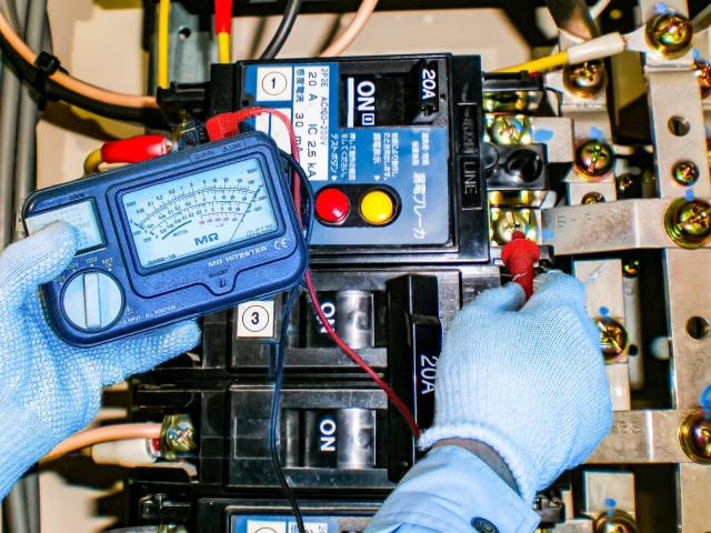 電気設備の点検とは、電圧や電流の測定・記録、絶縁抵抗の測定、配線のチェック、非常用発電機の点検などです。