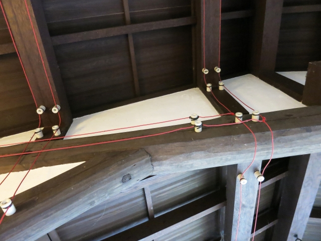 「がいし(碍子)引き配線」とも呼ばれていましたが、昭和30年頃を堺に、最近では見かけることの少ない工事です。