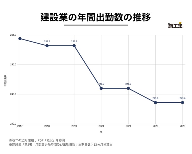 出勤数の推移としては画像のようになっており、2017年と比べると12日減っています。